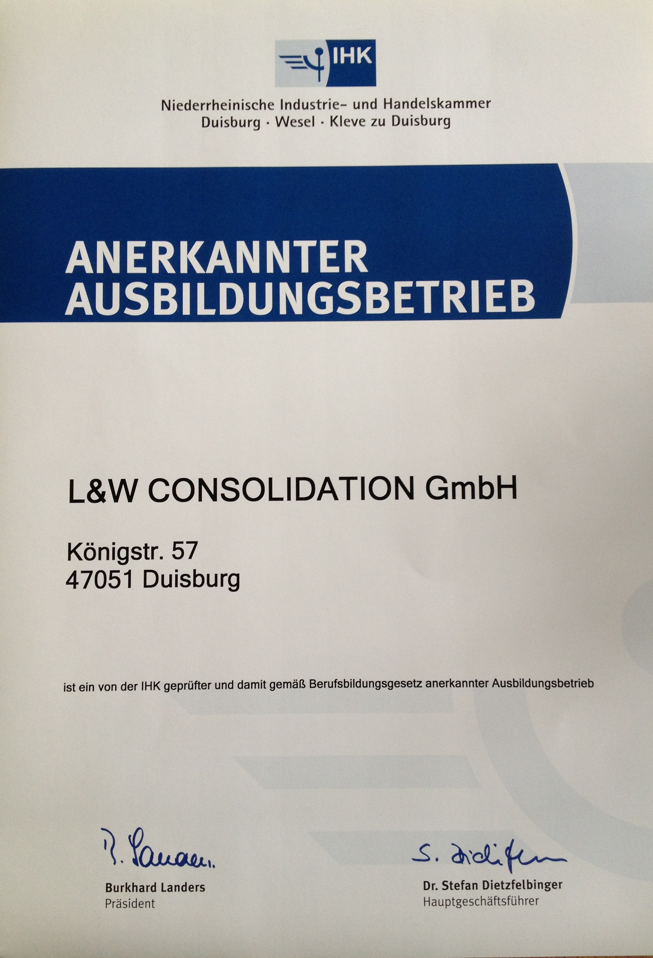 Bescheinigung der IHK als anerkannter Ausbildungsbetrieb